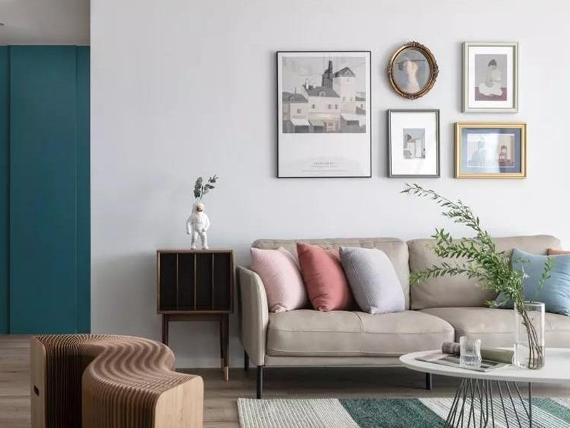 客厅空间整体设计融入了木质元素与亮色元素,增加整体层次与氛围营造温馨、宜居、活力的休闲式空间。