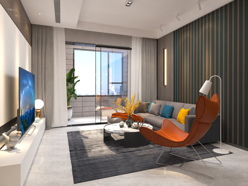 客厅雅致的冷色调,呈现出富有生活气息的舒适休闲空间,活力色彩的点缀,提升空间惬意氛围。