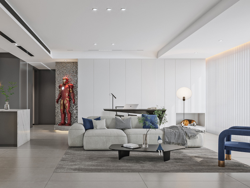 本案以现代简约风格为内核,从餐厅的实用饮食场、客厅的松弛社交域,到卧室的慵懒休憩区,均在简约中融入精致细节,既满足多元生活需求,又以冷静色彩与柔和质感,诠释出“干练与温度共生”的现代简约居家美学。