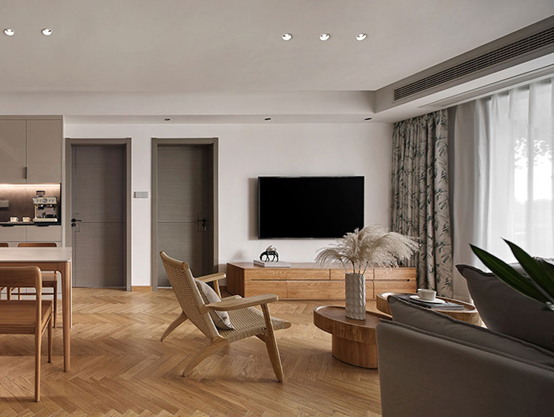 本案以原木元素串联,在满足社交、烹饪、睡眠、卫浴等多元生活需求的同时,借自然材质的温暖与简约设计的利落,诠释出兼具舒适与质感的原木居家美学。