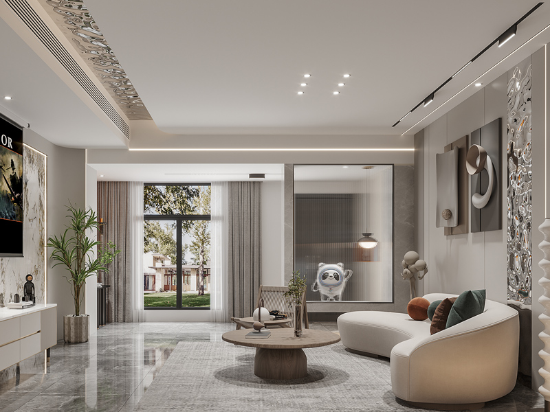 客厅选择异形的沙发,给人新颖柔和的感受,大气时尚,增添金属细节,营造出精致的空间氛围。