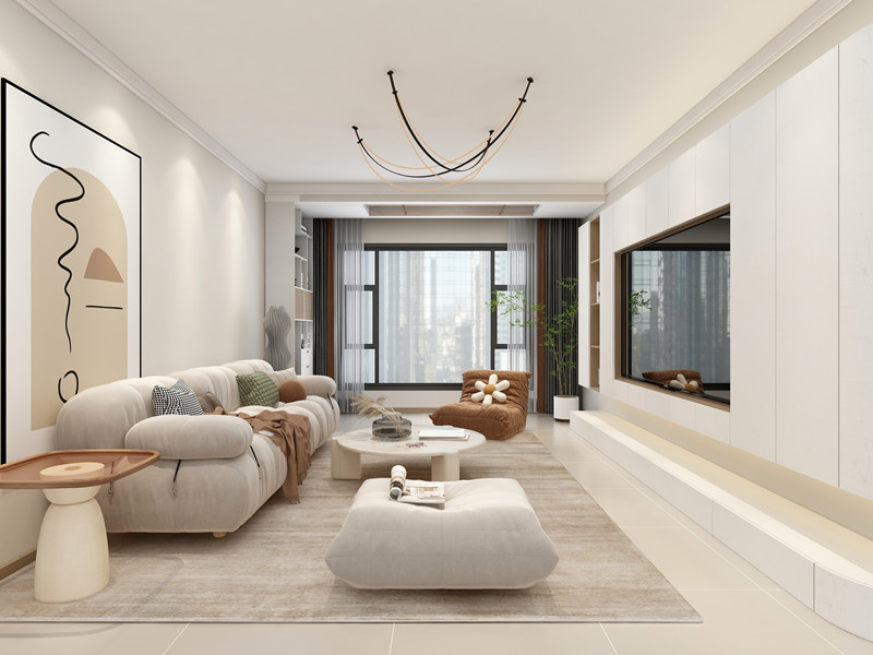 本案基于现代风格进行家居的装修设计,采用大量奶油色系的装饰元素,并结合开放式布局和柔和光线等,呈现宁静舒适家居生活,演绎纯粹的浪漫。