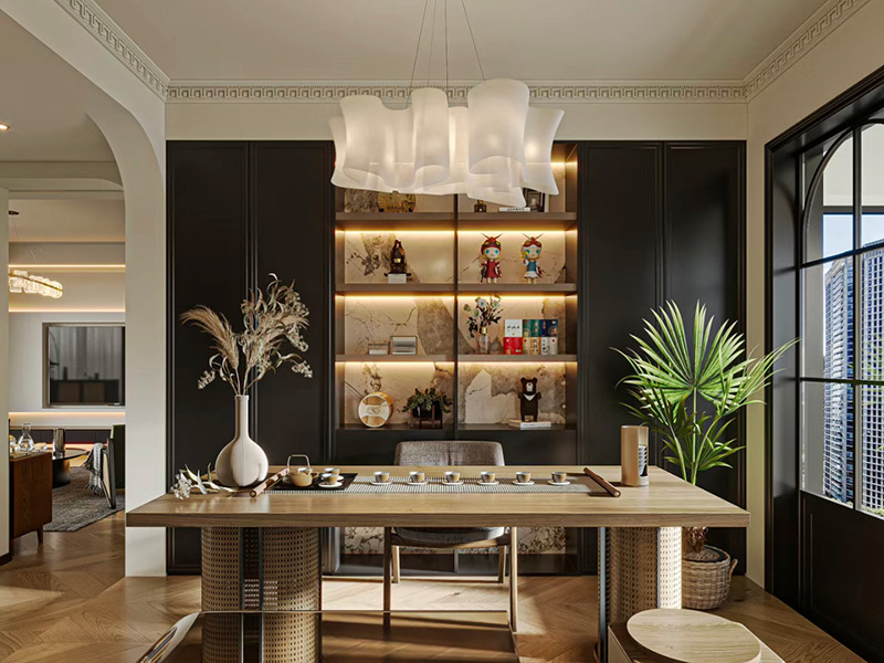 融合轻奢细节,通过浅木、低饱和色系与质感材质的搭配,奠定柔和松弛的空间基调。