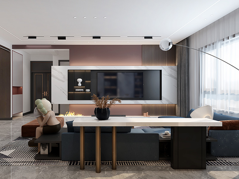 在装修客厅电视墙时,还可以将实用性能与艺术美感相结合,既能丰富居室的储物能力等,又能彰显空间颜值。