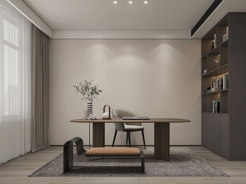 单独规划一个房间,设计到顶书柜,搭配简洁时尚的书桌椅等,打造安静惬意的办公、阅读空间。