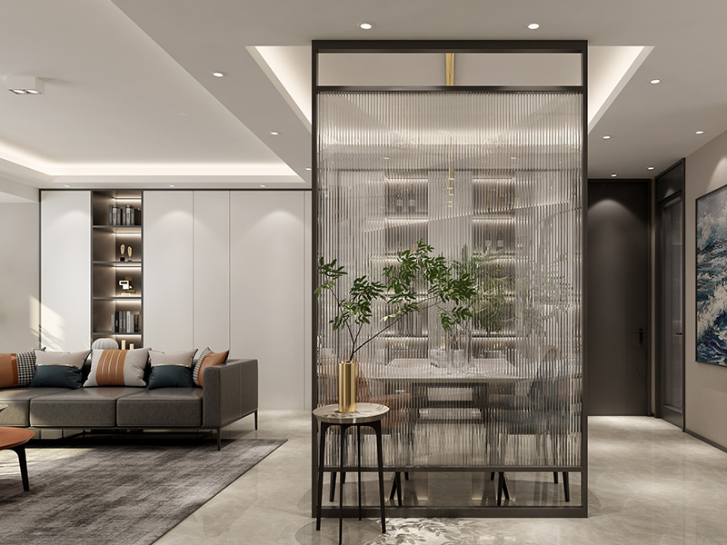 可以采用玻璃屏风+绿植点缀的设计形式,既为居室增加私密感,又能为空间增加装饰美观度。
