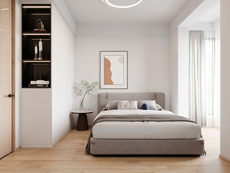 融合轻奢细节,通过浅木、低饱和色系与质感材质的搭配,奠定柔和松弛的空间基调。