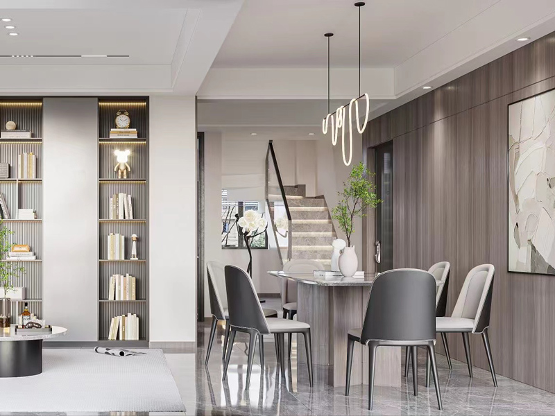 餐厅区域采用开放式布局在空间中,与整体的融合自然巧妙,艺术线性灯光设计提升精致时尚感。