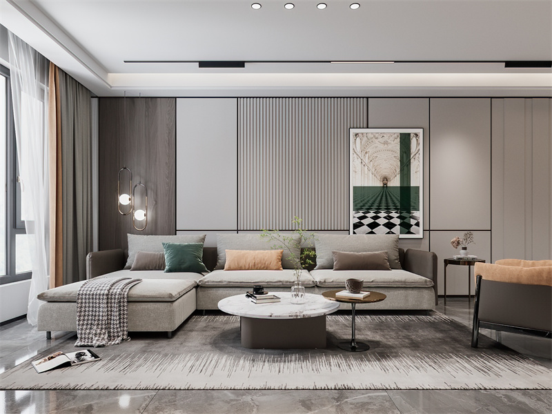 融合极简与简约元素,通过深浅色调、质感材质的搭配,构建出松弛的空间基调。