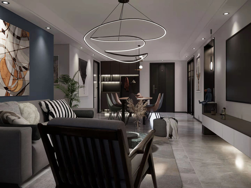 本案例风格定位于现代简约风,深色调的空间让整体更显沉稳雅致,融入精致的装饰摆件,提升时尚感。