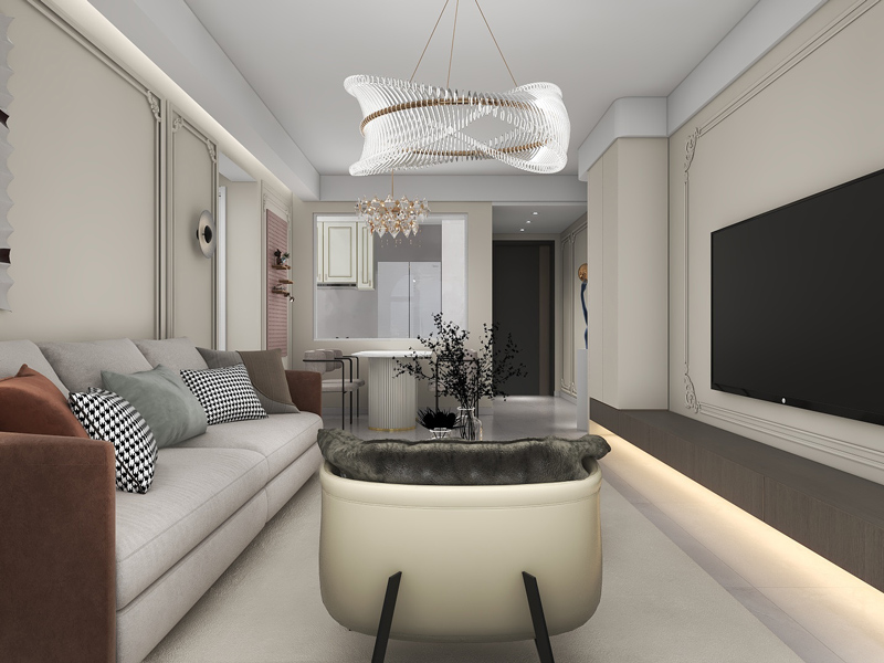 本案以奶油色系串联,借金属灯具、艺术挂画等细节注入设计质感,既满足现代家庭社交、休憩、学习等多元生活需求,又诠释“治愈感与设计感共生”的奶油居家美学。