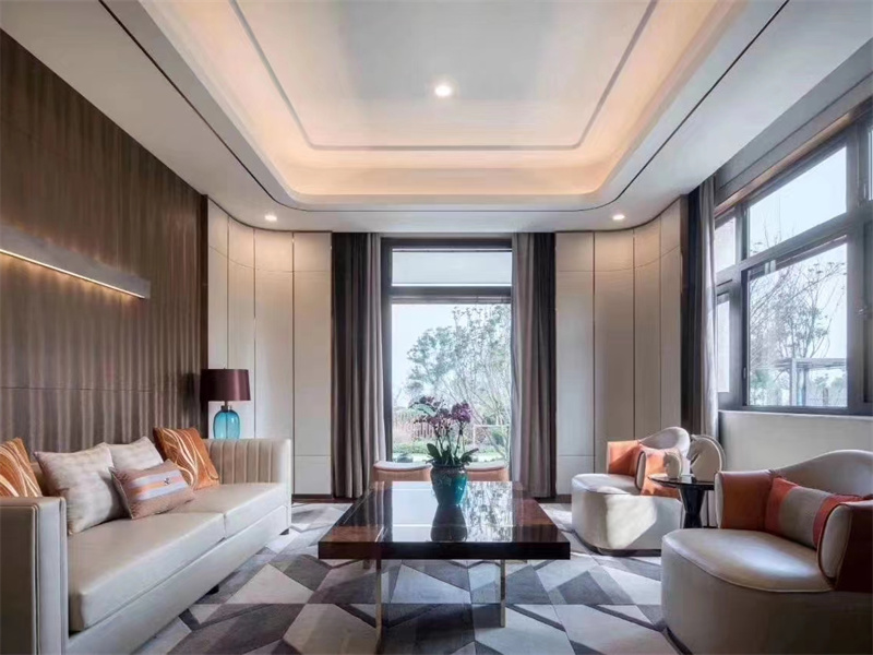 组合沙发采用围合式布局,增加客厅空间的灵活性和互动性,很适合多代同堂的家庭结构。从硬装设计到软装搭配,细节处诠释轻奢质感。