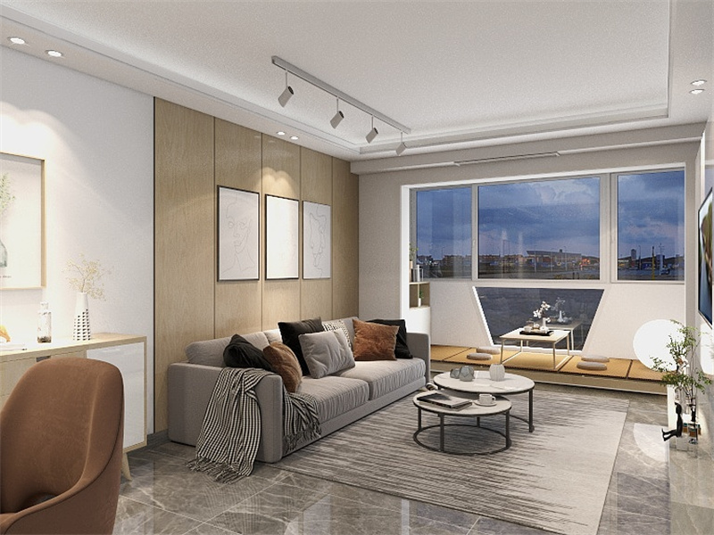 对客厅阳台进行改造布局,并融入地台设计,将其打造成一个开放式茶室,可与家人一起品茗畅谈,感受生活中的小美好。