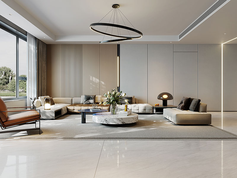 本案是大户型,基于现代简约风格的家居设计理念,以简洁大方、时尚优雅和温暖舒适等为主线,摒弃繁复装饰设计,实现简洁外形下的强大功能。