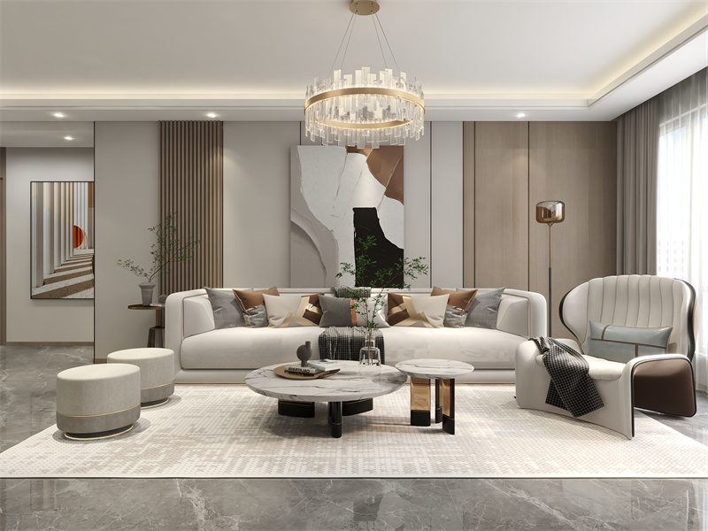 融合轻奢细节,通过浅木、低饱和色系与质感材质的搭配,奠定柔和松弛的空间基调。