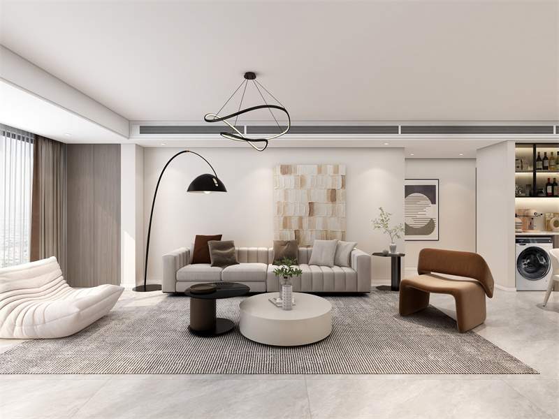 融合极简与简约元素,通过深浅色调、质感材质的搭配,构建出松弛的空间基调。