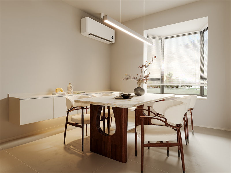 简约温馨的餐厅空间。窗边设餐桌椅,采光更好。靠墙定制白色餐边柜,实用美观。色彩上,米白墙面搭配原木餐桌与白色座椅,自然和谐。无过多繁杂装饰,营造出舒适放松的居家用餐氛围。