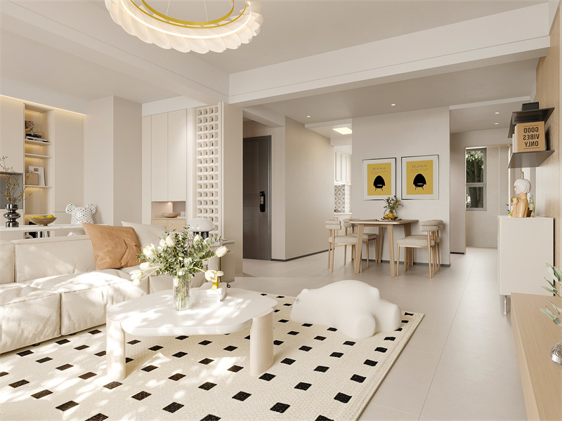 中性暖色为底,线条简约利落,适配亲子互动与日常休憩。家具造型圆润防磕碰,无繁杂装饰显整洁。在温馨中藏活力,让空间兼具舒适与孩童友好,呼应家有萌娃的松弛需求。