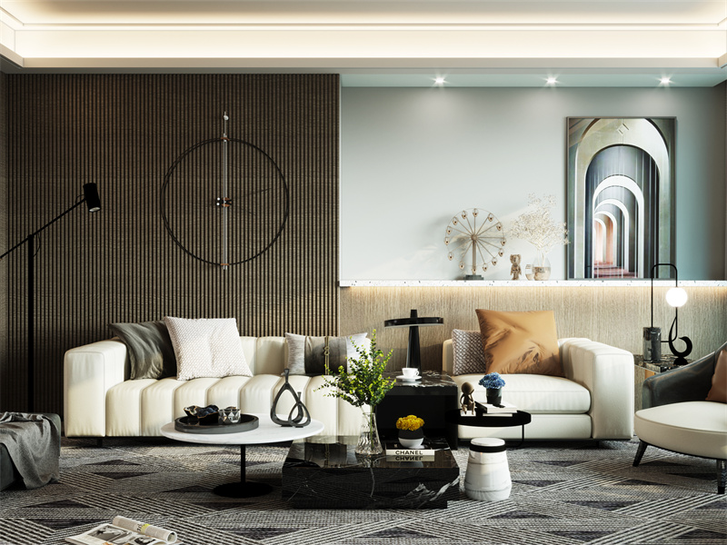 本案整体以克制色彩、简洁造型,串联起居日常,在理性秩序中,藏纳生活本真温度,尽显现代风格“简而有致”的空间美学。