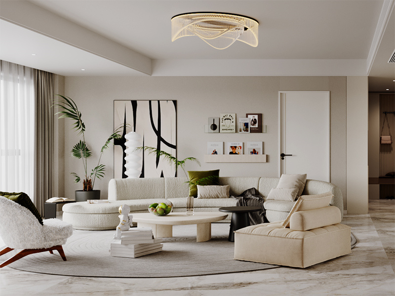 本案以奶油色系串联,借金属灯具、艺术挂画等细节注入设计质感,既满足现代家庭社交、休憩、学习等多元生活需求,又诠释“治愈感与设计感共生”的奶油居家美学。