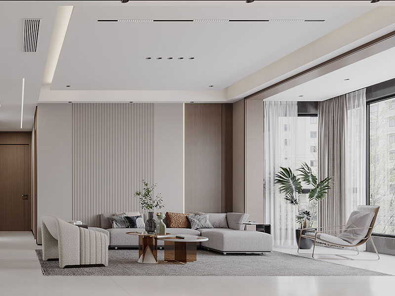 融合极简与简约元素,通过深浅色调、质感材质的搭配,构建出松弛的空间基调。