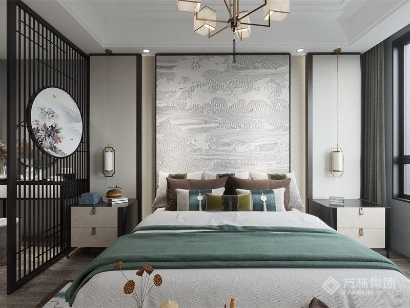 本案是现代中式设计,以现代人的审美需求打造富有传统韵味的空间。家具材质沉稳,呈现东方情调,空间整体感更轻松自然。
