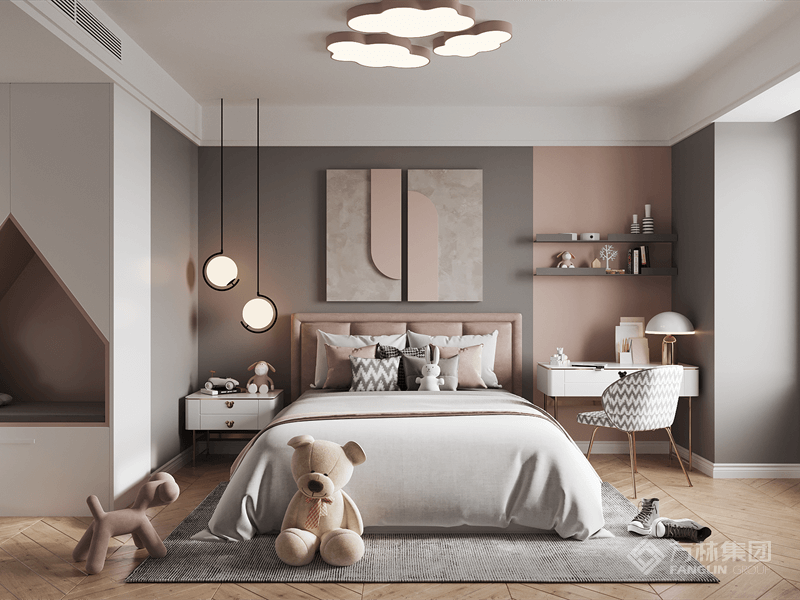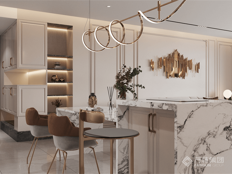 "如果说装修风格体现了家的灵魂,那么美式风格就是开阔的、温馨的和舒适的。 设计师从业主对新家的期待出发,基于美式风格的硬装基础,充分利用室内空间,通过软装的尺寸、颜色、材质等要素,将温馨、浪漫的氛围融入典雅大气的空间中,更显室内温暖干净、富有生活气息又不失格调。"