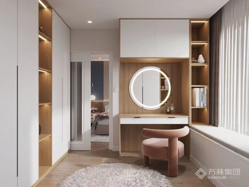 融合轻奢细节,通过浅木、低饱和色系与质感材质的搭配,奠定柔和松弛的空间基调。