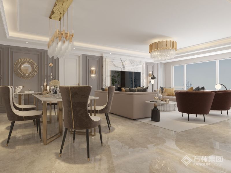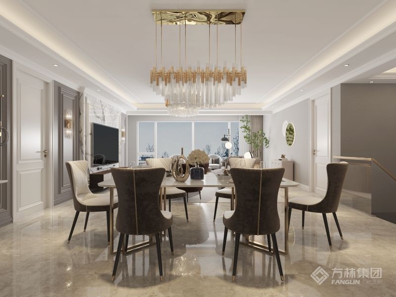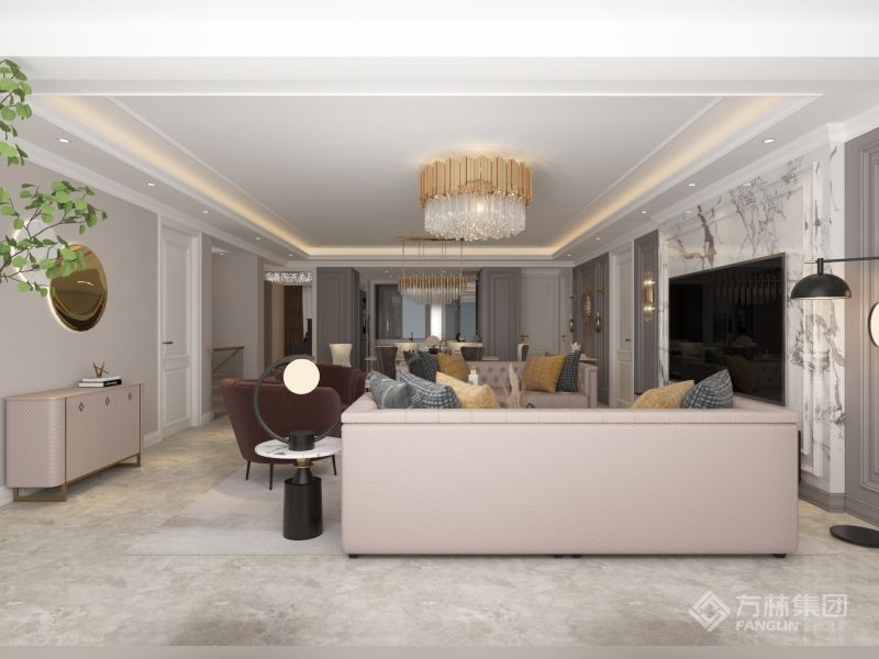 "如果说装修风格体现了家的灵魂,那么美式风格就是开阔的、温馨的和舒适的。 设计师从业主对新家的期待出发,基于美式风格的硬装基础,充分利用室内空间,通过软装的尺寸、颜色、材质等要素,将温馨、浪漫的氛围融入典雅大气的空间中,更显室内温暖干净、富有生活气息又不失格调。"