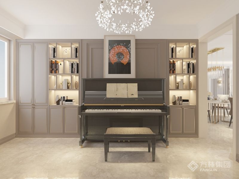 设计将实用功能与美学表达深度绑定:定制化柜体既满足收纳需求,又借内嵌灯光成为展示亮点。
