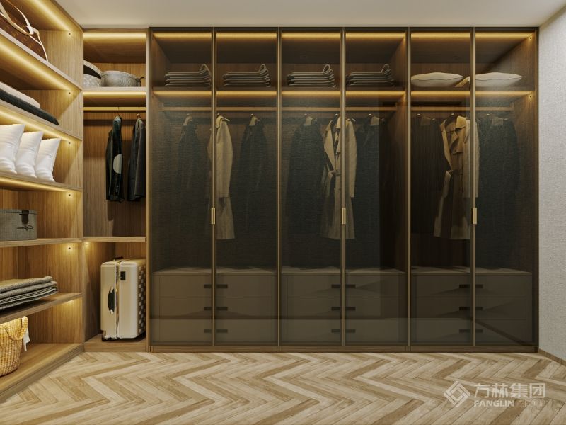 设计将实用功能与美学表达深度绑定:定制化柜体既满足收纳需求,又借内嵌灯光成为展示亮点。