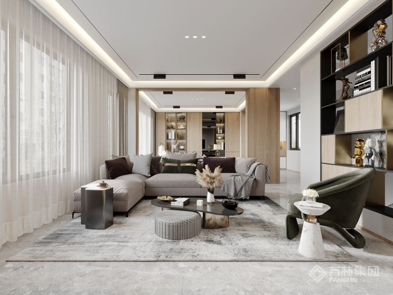 融合极简与简约元素,通过深浅色调、质感材质的搭配,构建出松弛的空间基调。