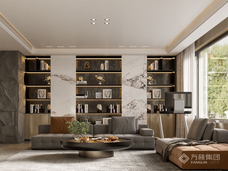 设计将实用功能与美学表达深度绑定:定制化柜体既满足收纳需求,又借内嵌灯光成为展示亮点。