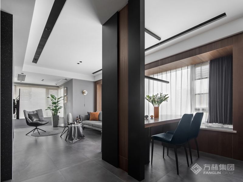 融合极简与简约元素,通过深浅色调、质感材质的搭配,构建出松弛的空间基调。