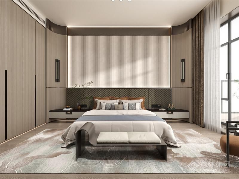 本案是现代中式设计,以现代人的审美需求打造富有传统韵味的空间。家具材质沉稳,呈现东方情调,空间整体感更轻松自然。
