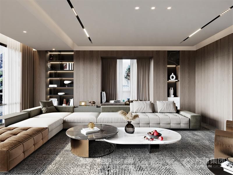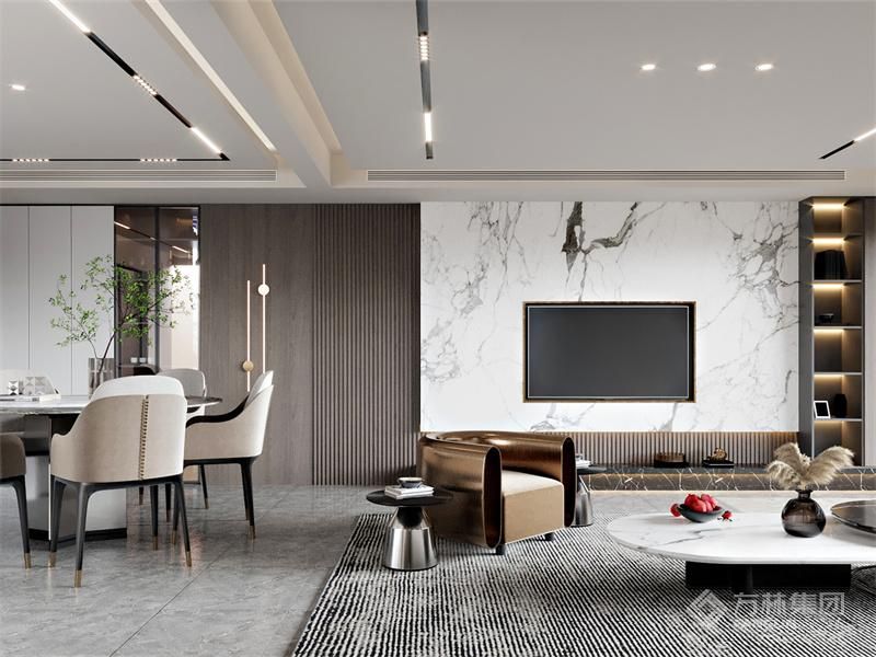 融合极简与简约元素,通过深浅色调、质感材质的搭配,构建出松弛的空间基调。