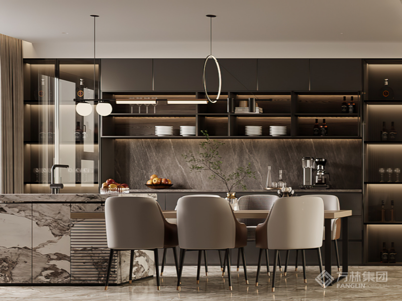作为家中的用餐功能空间,餐厅在装修布局时除了要注重优雅温馨就餐氛围的营造,也要注重其收纳功能布局设计。餐厅收纳建议平衡“展示+储物”,提升就餐仪式感。