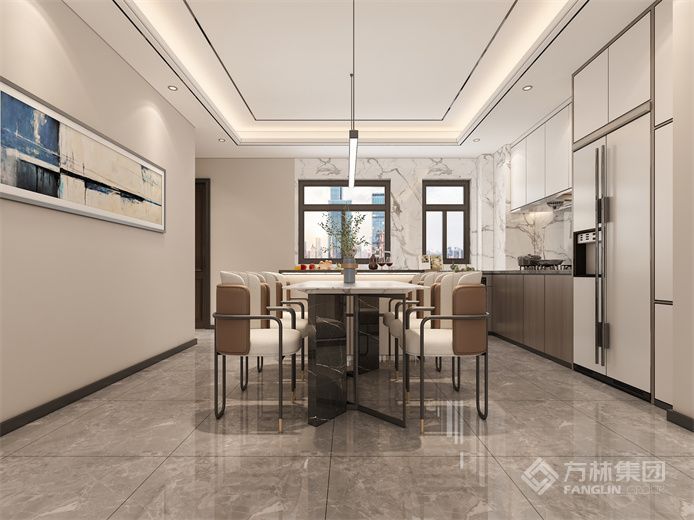 本案以现代简约风格为内核,从餐厅的实用饮食场、客厅的松弛社交域,到卧室的慵懒休憩区,均在简约中融入精致细节,既满足多元生活需求,又以冷静色彩与柔和质感,诠释出“干练与温度共生”的现代简约居家美学。