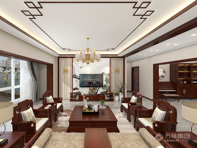 "大气磅礴的东方文化精髓雕琢于古木家具的纹理, 素胚勾勒出的青花笔锋由浓转淡, 走笔宣纸渲染出的仕女图被巧妙收藏, 冉冉檀香透过窗的烟雾下, 演绎出一个传奇家族的荣耀......"