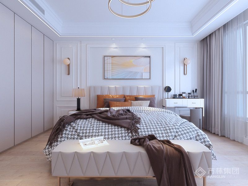 "如果说装修风格体现了家的灵魂,那么美式风格就是开阔的、温馨的和舒适的。 设计师从业主对新家的期待出发,基于美式风格的硬装基础,充分利用室内空间,通过软装的尺寸、颜色、材质等要素,将温馨、浪漫的氛围融入典雅大气的空间中,更显室内温暖干净、富有生活气息又不失格调。"