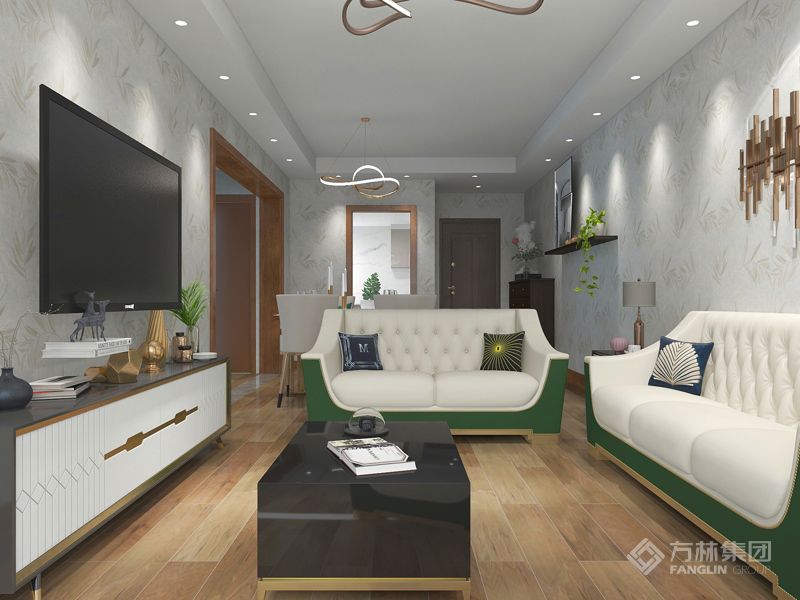 "如果说装修风格体现了家的灵魂,那么美式风格就是开阔的、温馨的和舒适的。 设计师从业主对新家的期待出发,基于美式风格的硬装基础,充分利用室内空间,通过软装的尺寸、颜色、材质等要素,将温馨、浪漫的氛围融入典雅大气的空间中,更显室内温暖干净、富有生活气息又不失格调。"