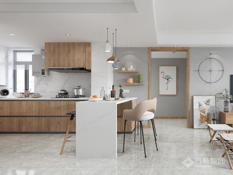 本案以原木元素串联,在满足社交、烹饪、睡眠、卫浴等多元生活需求的同时,借自然材质的温暖与简约设计的利落,诠释出兼具舒适与质感的原木居家美学。