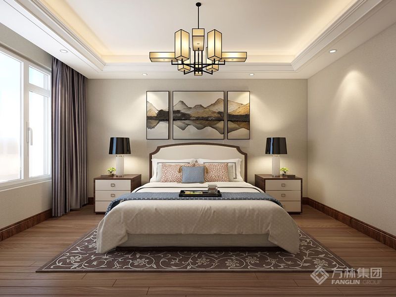 本案是现代中式设计,以现代人的审美需求打造富有传统韵味的空间。家具材质沉稳,呈现东方情调,空间整体感更轻松自然。