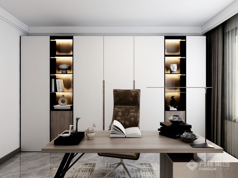 设计将实用功能与美学表达深度绑定:定制化柜体既满足收纳需求,又借内嵌灯光成为展示亮点。