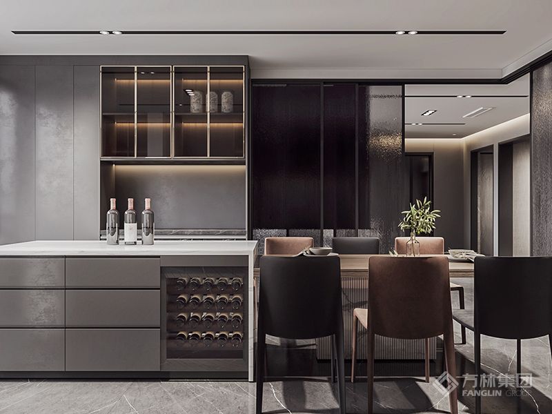 本案以新中式风格为内核,深木色、灰调与金属元素交织,奠定雅致沉稳主调。从门厅的收纳秩序、客厅的轻奢雅致,到餐厅的烟火仪式、次卧的多元实用,均在现代材质中融入中式线条与文化摆件,诠释“传统韵味与现代生活共生”的居家美学,打造兼具文化底蕴与舒适质感的雅致居所。