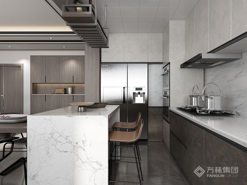 本案以新中式风格为内核,深木色、灰调与金属元素交织,奠定雅致沉稳主调。从门厅的收纳秩序、客厅的轻奢雅致,到餐厅的烟火仪式、次卧的多元实用,均在现代材质中融入中式线条与文化摆件,诠释“传统韵味与现代生活共生”的居家美学,打造兼具文化底蕴与舒适质感的雅致居所。
