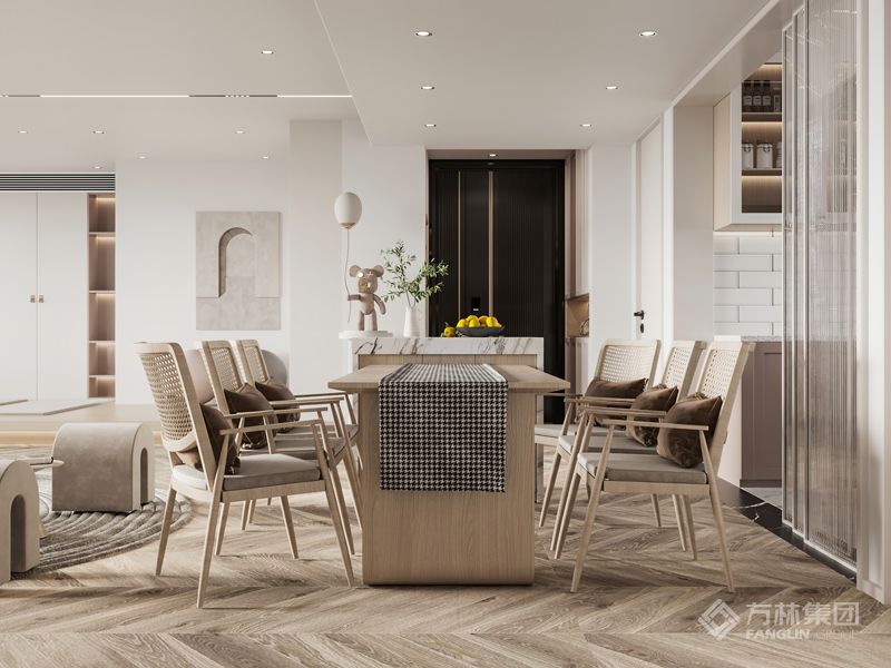 本案以轻奢风格为内核,米灰、暖棕为柔和主调,通过金属线条、皮质、玻璃等质感材质传递精致感。从客厅的格调社交、餐厅的仪式饮食,到主卧的静谧休憩、客卧的多元实用,均在中性色调基底中融入轻奢细节,诠释兼具格调与烟火气的轻奢居家美学。