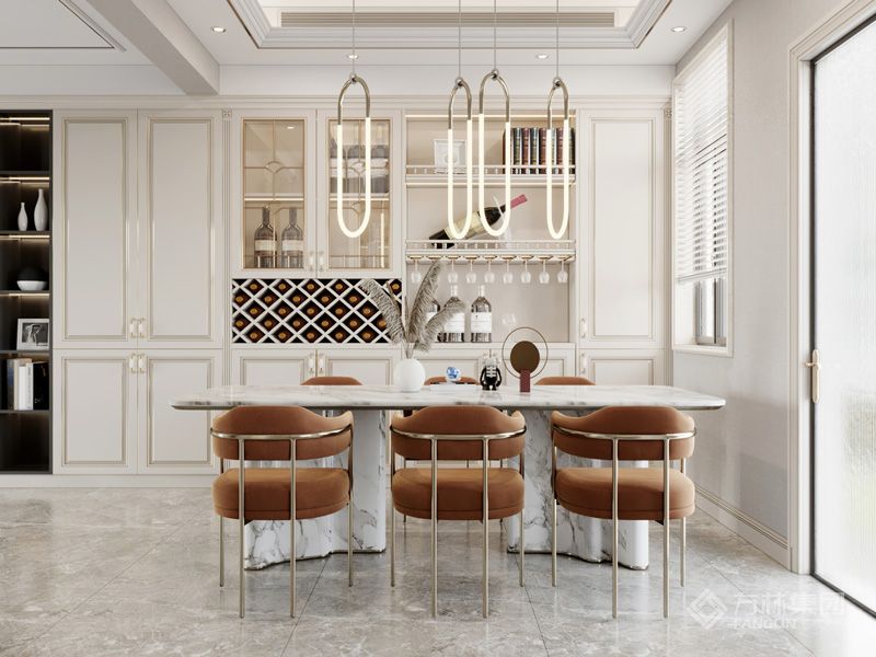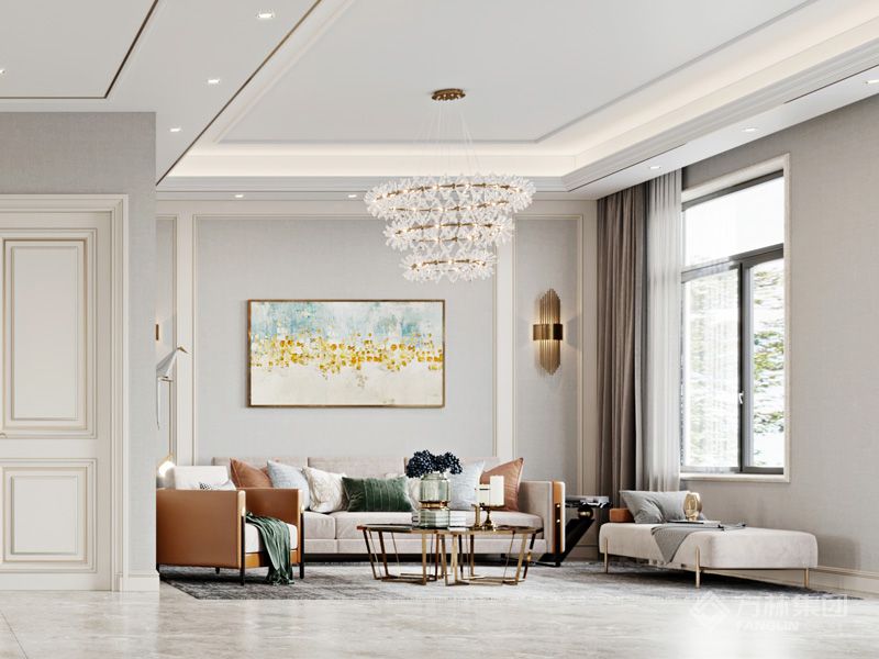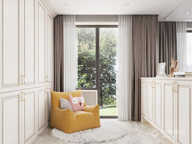 "如果说装修风格体现了家的灵魂,那么美式风格就是开阔的、温馨的和舒适的。 设计师从业主对新家的期待出发,基于美式风格的硬装基础,充分利用室内空间,通过软装的尺寸、颜色、材质等要素,将温馨、浪漫的氛围融入典雅大气的空间中,更显室内温暖干净、富有生活气息又不失格调。"