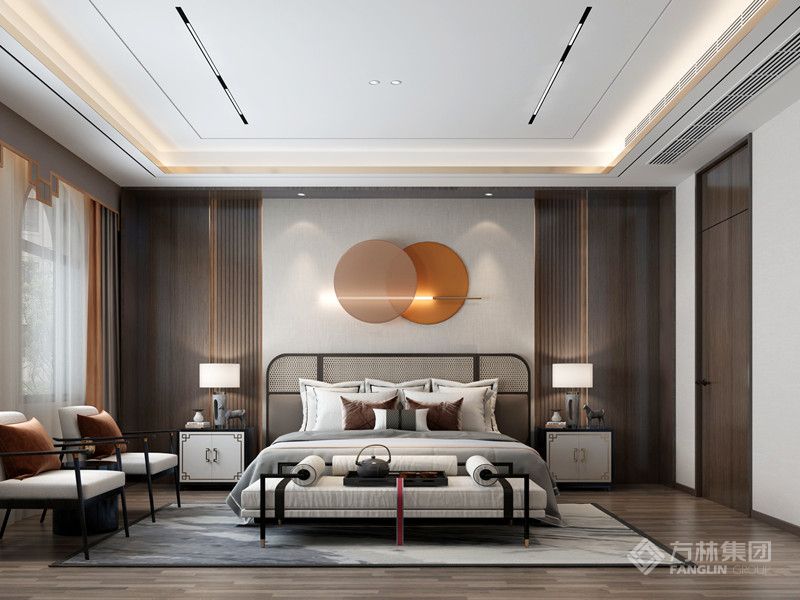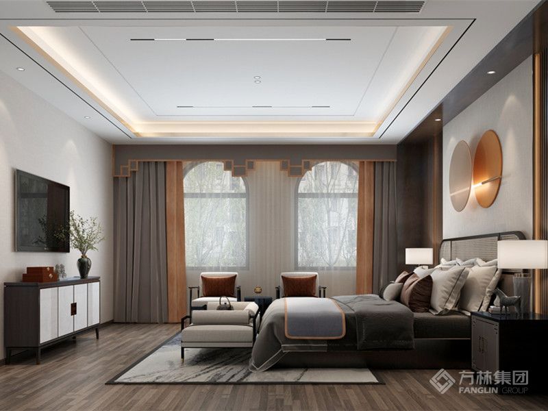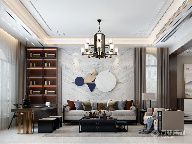 本案是现代中式设计,以现代人的审美需求打造富有传统韵味的空间。家具材质沉稳,呈现东方情调,空间整体感更轻松自然。