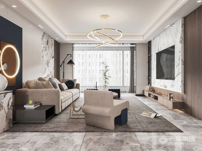融合极简与简约元素,通过深浅色调、质感材质的搭配,构建出松弛的空间基调。
